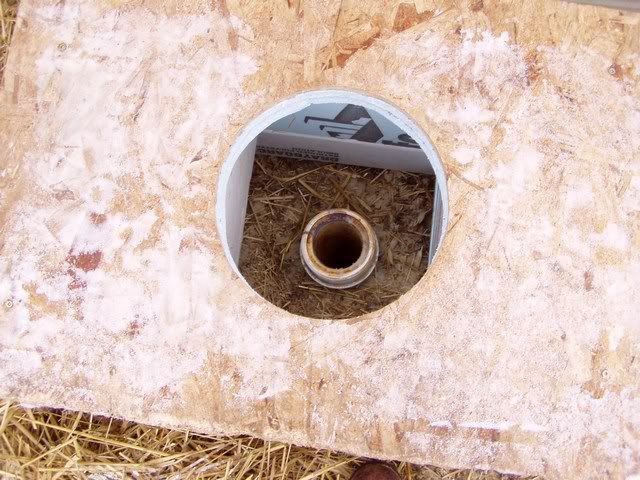 http://i121.photobucket.com/albums/o...scovies001.jpg Here's a photo of the pipe I put down. The pipe is a scrap piece of 3" with a 4" adapter on the top. It's goes about 5' down and there is water in the bottom of the pipe. http://i121.photobucket.com/albums/o...scovies002.jpg Next I'm going to build a small plywood box and insulate it with 2" of blue foam. I'll add an extension on the pipe so that it comes up near the bottom of the bucket so that I can pack the rest of the box full of straw. I'm also going to bank the outside of the box with straw. I've got some scraps of pond liner so I'll put that on top of the box and over some of the straw so the geese can't splash too much water on the straw around the box and ruin the insulating qualities. I'll add more photos as I get more done. |
