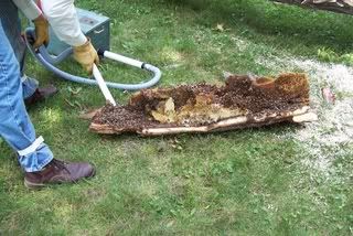 I've collected 7 swarms in 4 days and turned down 3 calls directing them to club members I know are looking for more bees. I find collecting swarms so much fun I collect and give them to people in the clubs I know who are looking for more bees. I ran out of equipment and have resorted to card board boxes. A long sleeved shirt, jeans a brimmed hat and a veil are all that is needed really for bee suits. I've been doing this for a long time, have 12 out yards with well over 100 colonies and have never owned a bee suit nor disired one. Many people i know don't use the ones they own either as they are so hot. http://img.photobucket.com/albums/v2...imgatqueen.jpg Tape or close up the slit in the shirt sleeve from the button back. They will crawl in there and get mad when they can't find the way out or they get pinched a bit. Close off the pant legs too. http://img.photobucket.com/albums/v2...omthecap-1.jpg A swarm like this can be shook into a 5 gallon pail easy. Atatch the lid to the pail with a short section of rope so the lid is handy. http://img.photobucket.com/albums/v2...warmofbees.jpg http://img.photobucket.com/albums/v2...gbucketset.jpg :pound: It's addicting so be fore warned:hysterical:. :D Al |