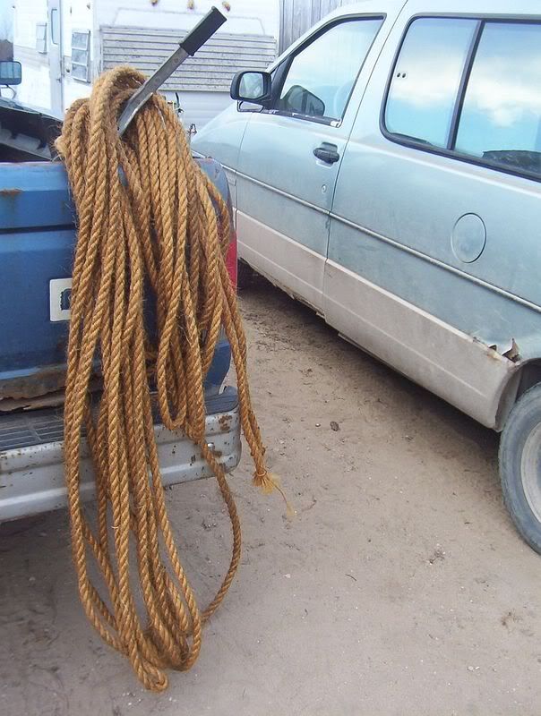 I used it all in one 3/4" rope that is 140 feet long. That bale of twine was wrapped in burlap. I would love to have a couple of skids full of it. http://i183.photobucket.com/albums/x...peresized2.jpg