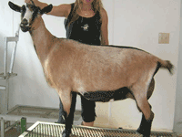 Geiss: Is it my imagination??? The goats in your pictures seem to be quite a bit smaller than the Alpnes here in the US. This is one of my does that I purchased recently. They weighed her before I picked her up and she weighed 195#. I have taken her to a couple shows and several other does in her class were larger than her, so she is not unusually large. http://i47.photobucket.com/albums/f1...hio/phoebi.png |