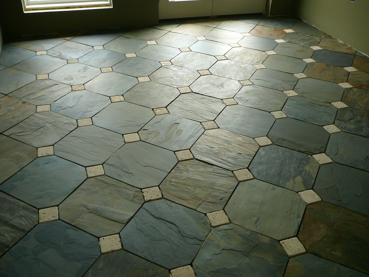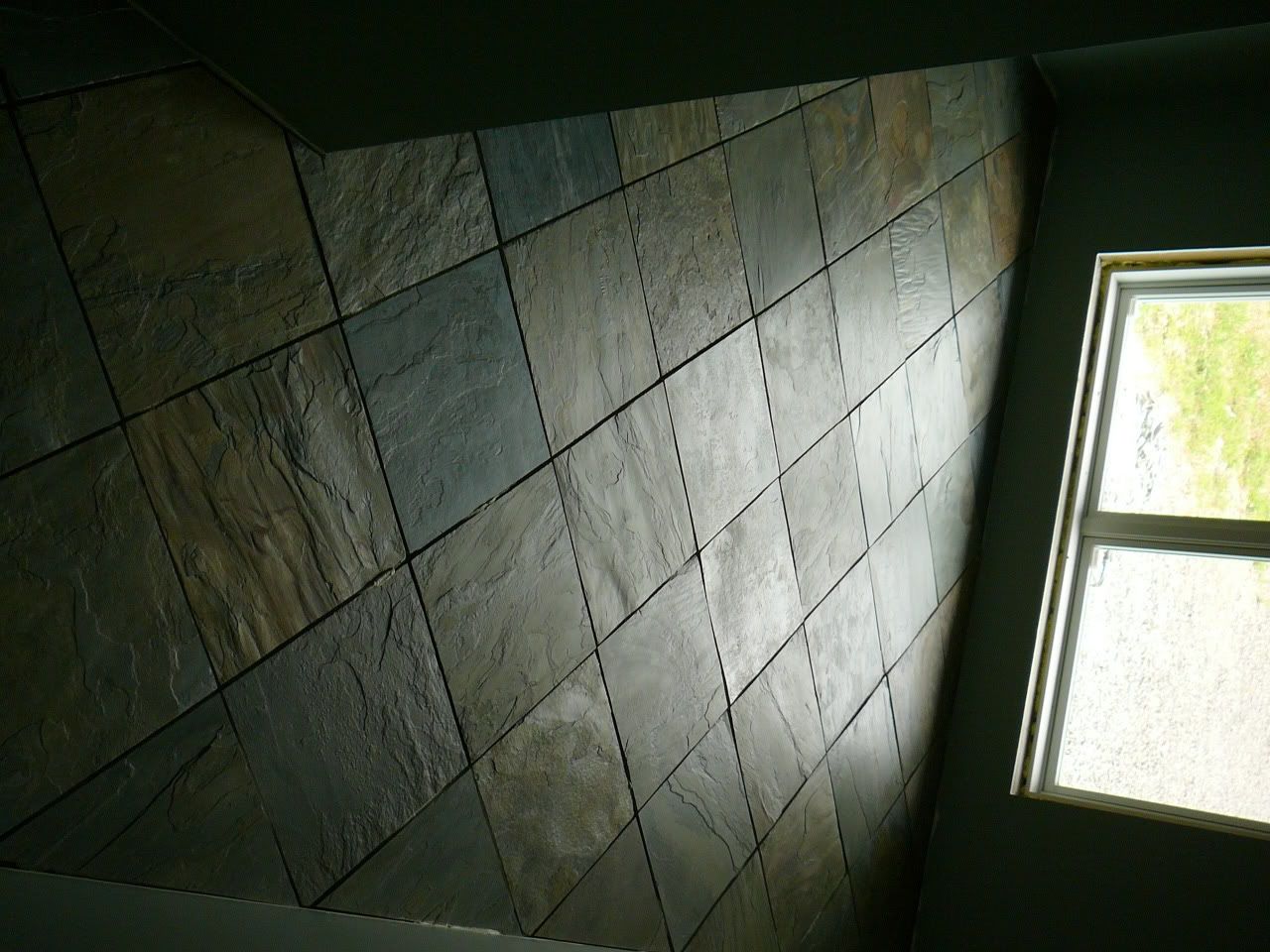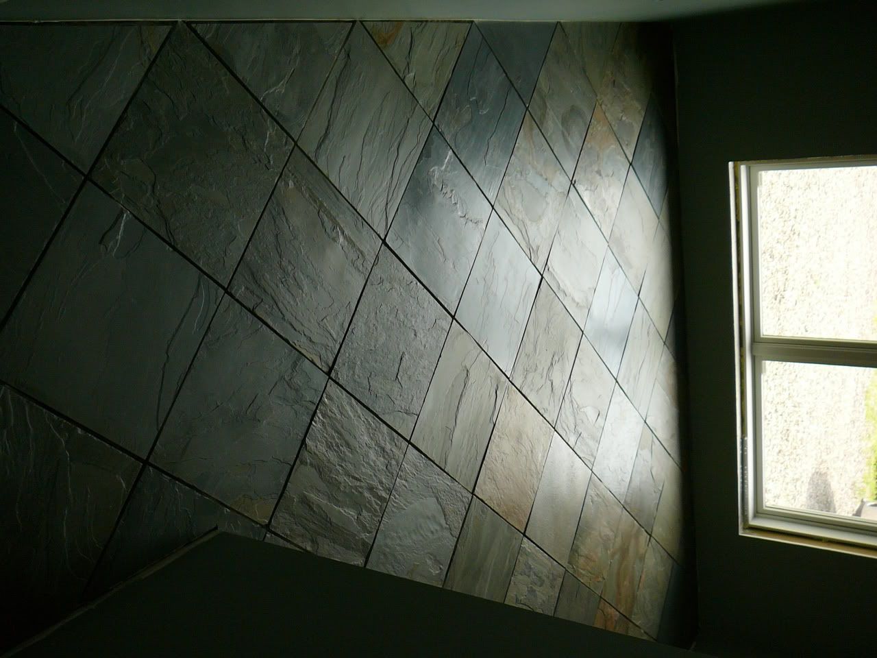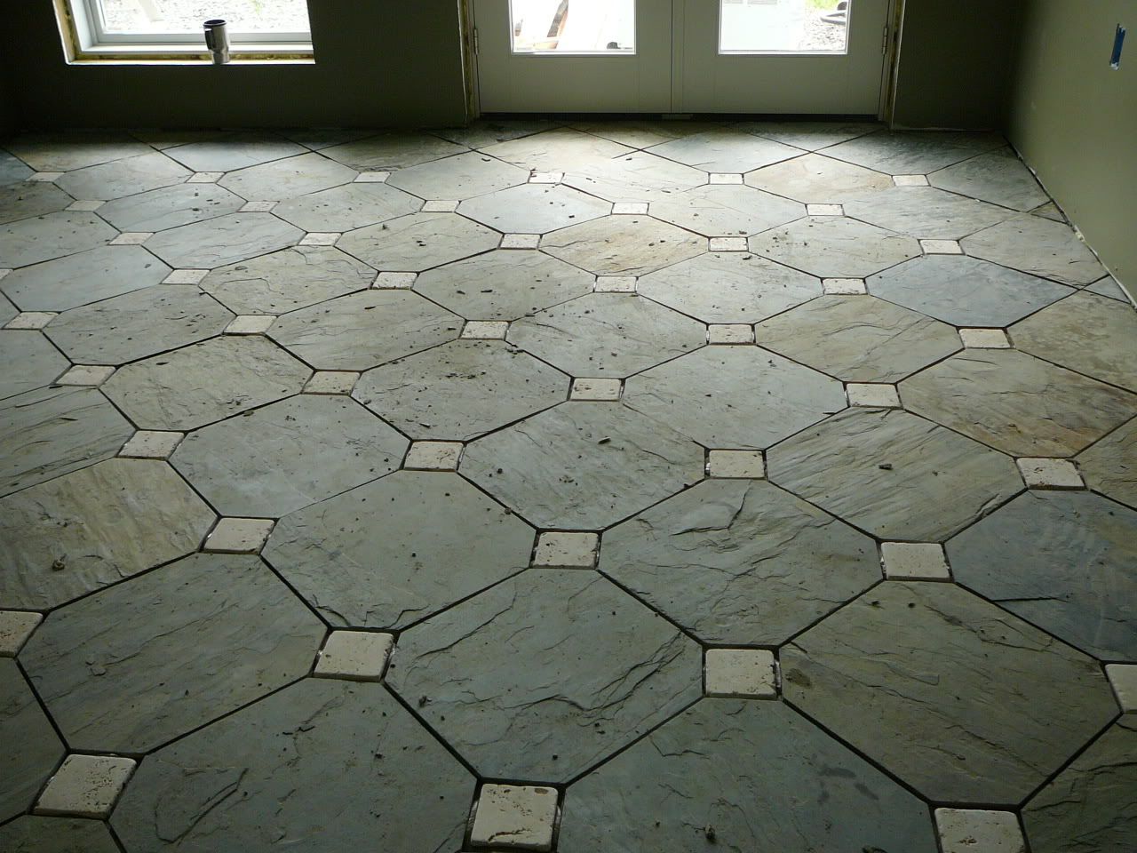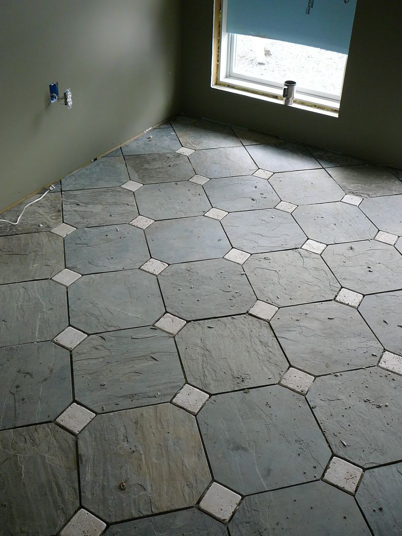 If you cut all of the slate 'corners' off, for the little diamonds to fit in, I reckon you did spend days at the tile saw. What brand/model of saw did you use. I've only used the el cheapo saws in the past (because of the smallness of the jobs)... when I ever get around to the flooring stage of my home (right... that might be a year or more away, at my current speed) I'd like to get a nice saw...