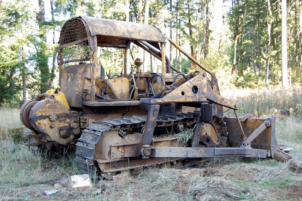 The general consensus between my hub and neighbors is to go with the bigger you can get--you will get the heavy stuff done in way less time, and be able to do more without breaking it(if you use a lightweight dozer for something too heavy or hard for it you will bust stuff). THIS is the best dozer--1950 TD14 for $500. It is a true bucket of bolts but it gets the job done. Parts---bwahahahahaha, there are no "parts", hub Red Greens it. We need a new cable for the back(or else get it off and have someone splice it)but it came broke:D. It starts on gas and flips over to diesel. I have to admire the old thing. The hoses leak and we keep patching them, but the thing still runs despite it's being old and "obsolete". Hey, it works :D. I call her Betsy http://i205.photobucket.com/albums/b...cts/tom048.jpg |