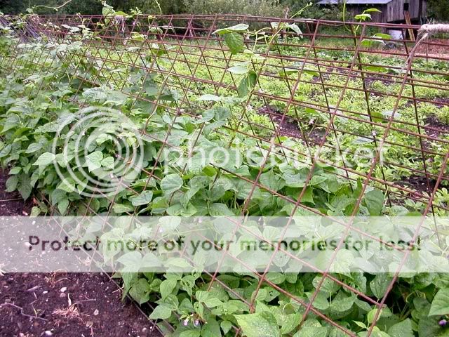 I had to laugh when I saw your tomato tepees, as we did that ourselves this year, using the exact same material. Unfortunately, it did not occur to me to do it soon enough, and I had one heck of a time trying to get the tomatoes to vine up the one side, as I planned on one side supporting tomatoes, the other side supporting peas. It basically worked great for the peas, not as well for the tomatoes, which ended up not being a problem as they all got blight :grumble: This year I will plant the tomatoes smack in the middle instead of to one side.