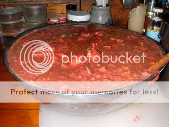 The panels I use have smaller holes on the bottom, for containing baby livestock, (they are stock panels) and larger holes over the remaining greater portion of the panel. I turn the panel upside down, small holes toward the top. This facilitates weeding and makes reaching into the center during harvest much easier. The small holes at the top don't interfere with harvest, but there will be an occasional tomato or cucumber get wedged in one of them. It's not a common occurrence. I always plant tomatoes and peppers in the center of the panel structure, but my beans, peas and cucumbers get planted just inside the bottom of each panel, forming two rows per A frame structure. I plant my peas early as possible, and then as they begin to die off, plant green or shell beans down the center of the A frame. By the time the peas are dead and harvested, the new bean plant is well on it's way and fills the panel frame quickly, producing two valuable crops per one time panel assembly. Did I ever mention that I'm an efficiency fanatic ? We use the tomatillos for green enchilada sauce and salsa. I make my salsa with a very sharp knife, cutting up tomatoes, tomatillos, garlic, onion, hot and mild peppers and cilantro into pieces the size of a small pea. I add a few larger chunks to make it interesting, then I add just a little salt and vinegar to taste, and the texture of the fine cut produce just DOES it, if you know what I mean. Here's a sample. :) http://i429.photobucket.com/albums/q...T/DSCN9408.jpg Now back to trellising..... I use four foot panels, and, in most cases that will suffice nicely, but, of you get excited in your soon-to-be composting endeavors, your tomatoes will dwarf your four foot panels and you'll need to upgrade to six footers. Maybe I'll use some six footers this year..... Yes, there are four foot A frames under these late summer tomatoes. http://i429.photobucket.com/albums/q...100_1621-2.jpg As for the hollow potatoes, I've heard that cold, wet weather will cause some of that, and I've heard of commercial growers applying gypsum to prevent it. I don't know whether it's the calcium or the sulfur in the gypsum that actually benefits the potato, maybe both. I do know that in my heavily composted ground, I've had very little incidence of hollow potato syndrome. I did have a very few show up this year, but we're getting them out of the cellar every day and come across one maybe once a week. |