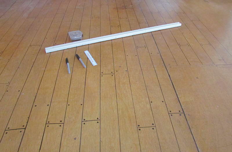 We put oak plywood in the living room. It was never meant to be permanent so we didn't cut strips, we made them 2' x 4' to be as easy and manageable as possible.