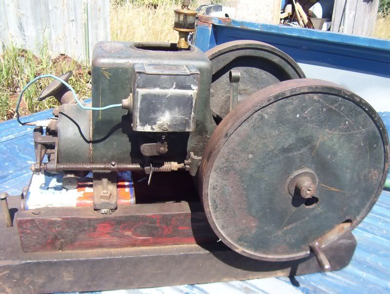I have 13 of those old flywheel engines like this one and I like the rusty ones best. Just like they were last used. This one came right out of a barn where it had last been used. A little fresh gasoline and she fired right up. http://i183.photobucket.com/albums/x...7/RedSkids.jpg http://i183.photobucket.com/albums/x...7/RedSkids.jpg That is a gallon can from Neats Foot Oil used as a gas tank and a piece of solid copper wire for the spark plug. That is what the original owner did to it and as long as it is working so well why would I want to change it. |