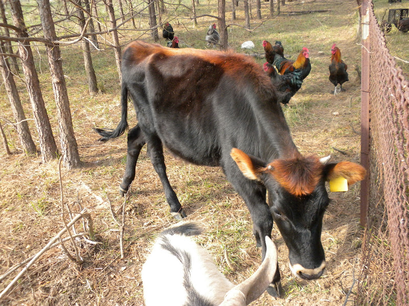 I did want to say I like the way your heifer and your chickens match!