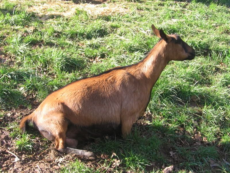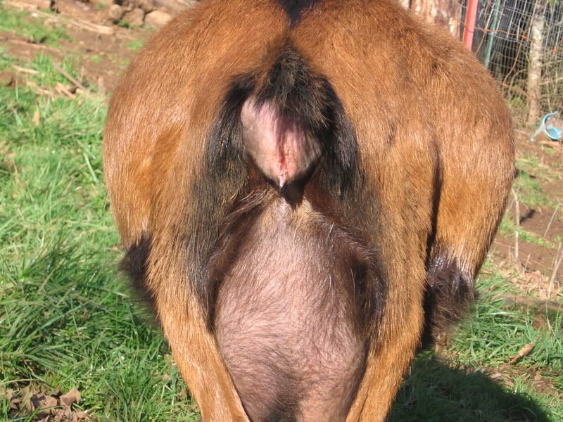 Well here is my other oberhasli doe lily and she is due today(I think).this is her 2nd freshening. She has milk in her udder but not full and she has had a little mucus(white) for a couple of days not much just like a penny size stuff that I saw, her ligaments are soft but still there and you have to really look to find.I can put my fingers all the way around her tailhead but I have been able to do that for a while but now i can put my hand all the way around her spine on her rump( I know I make no sense but that is the only way I could think of to word it).